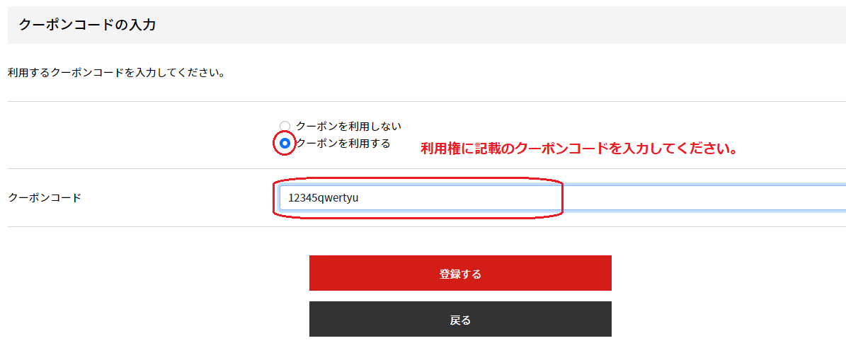 ③「クーポンを利用する」にチェックを入れ、クーポンコードを入力してください。