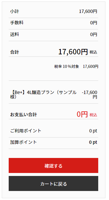⑤レジの画面で、お支払い合計が「0円」になっています。